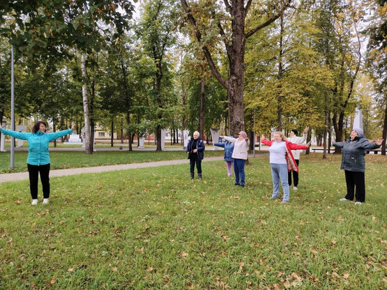 В первый день октября 2025 года, отмечая День пожилого человека, активные участники объединения "Гармония" Клуба золотого возраста провели утро необычно — начали его с общей утренней гимнастики. Этот коллектив, известный своим позитивом, активностью и неукротимой жизненной энергией, решил отметить праздник именно так.